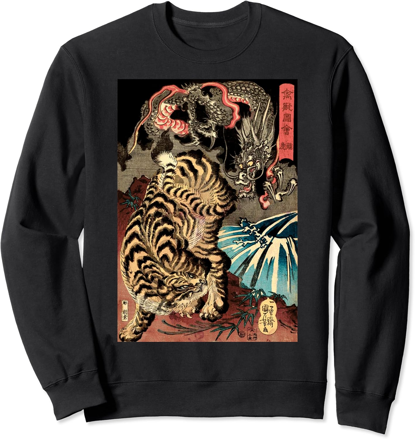 Retro Vintage Dragon Fighting The Giant Tiger Japanese Sweatshir
